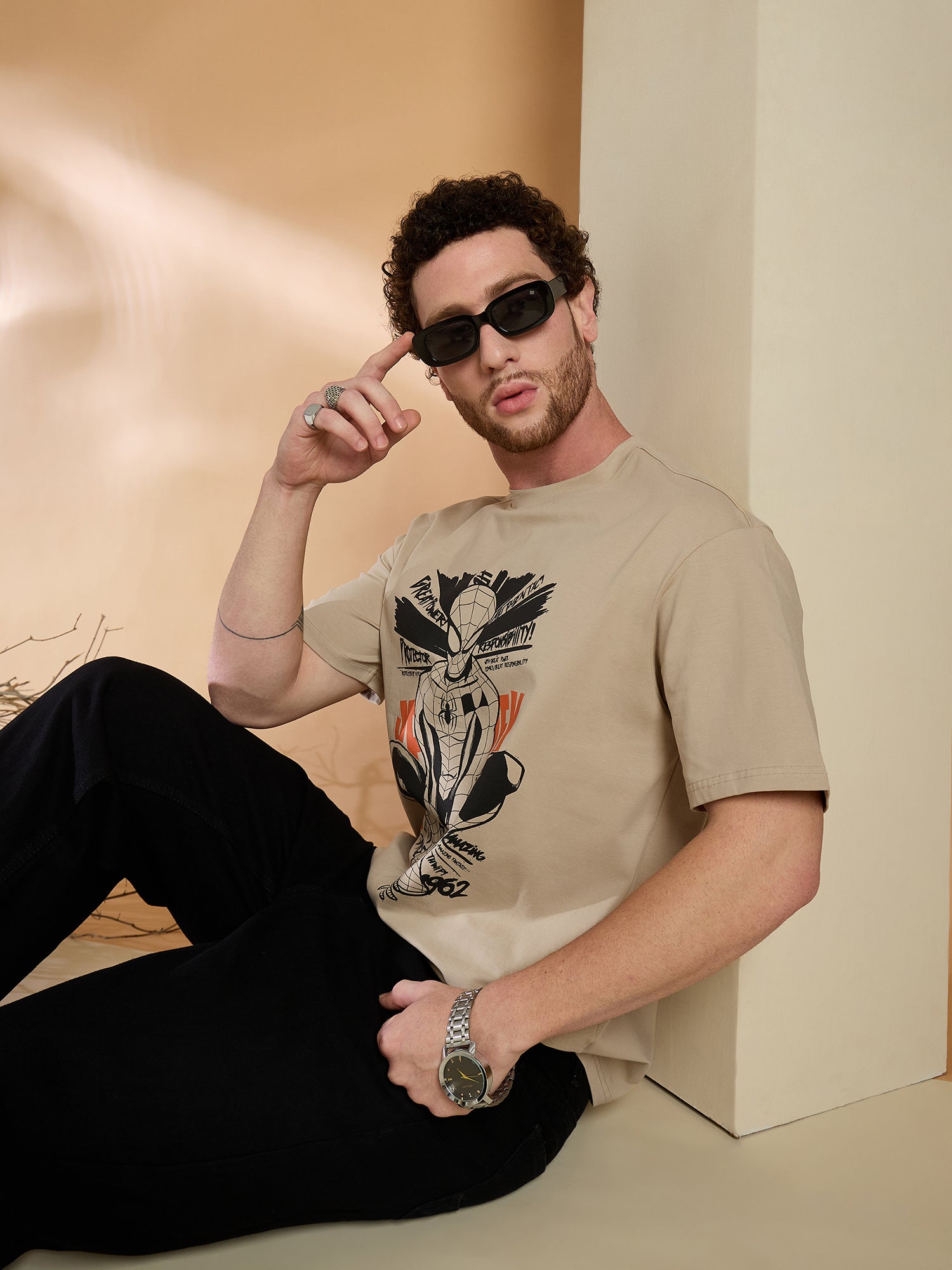 Embrace your inner hero with this striking Beige Spiderman Printed Round Neck T-shirt. Featuring a bold, eye-catching graphic of the iconic web-slinger, this tee combines comfort with unmistakable style. The soft, breathable fabric ensures all-day wearability, while the classic round neck design offers timeless versatility. Perfect for fans of Marvel's legendary superhero, this shirt makes an effortless statement whether you're heading out casually or showcasing your fandom. Elevate your everyday wardrobe with a piece that celebrates adventure and heroism.
