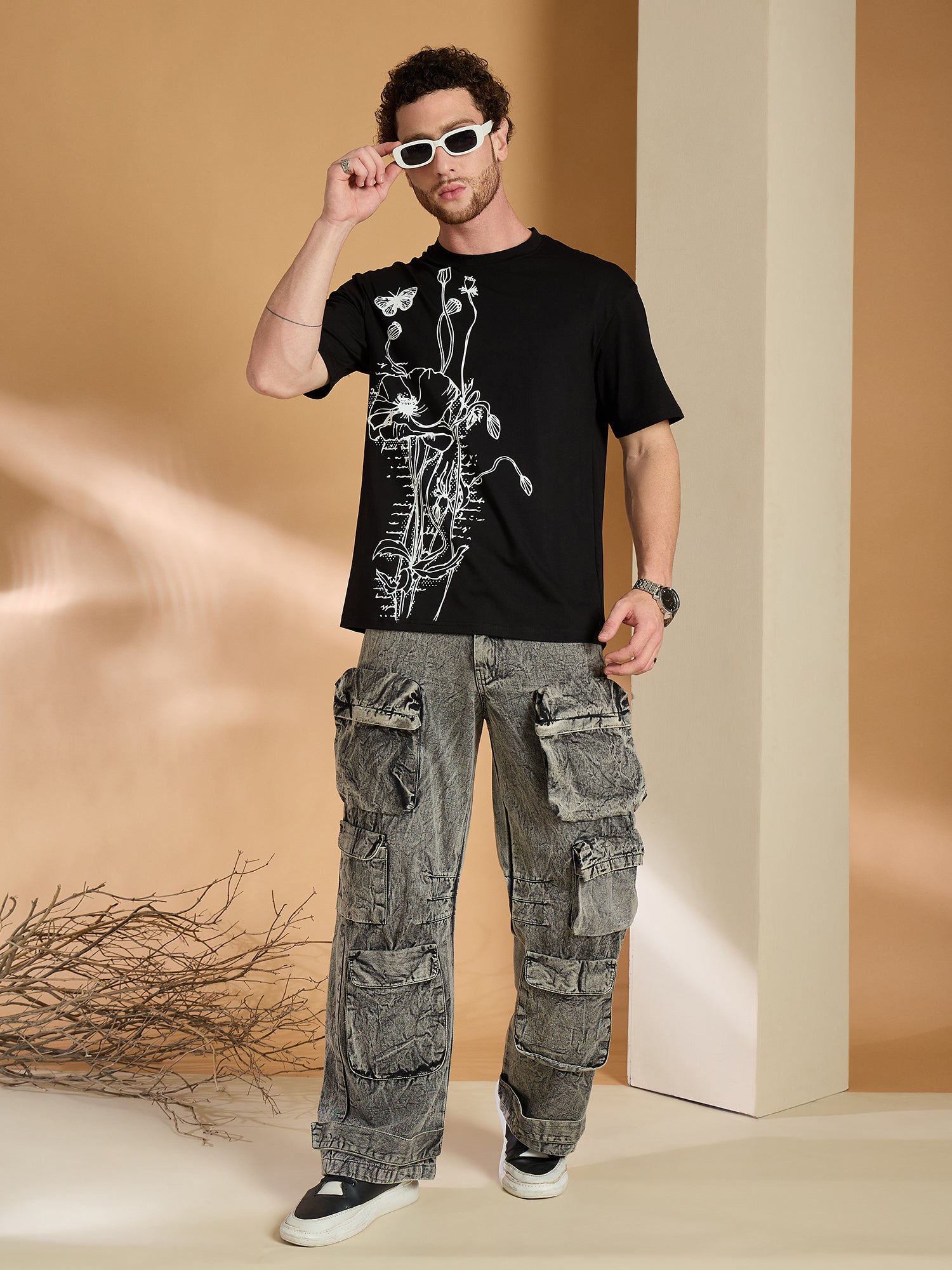 Elevate your everyday style with this bold black printed round neck tee. Crafted for comfort and attitude, it features a striking graphic design that makes a statement without saying a word. Perfect for casual outings, weekend hangouts, or whenever you want to add a dash of personality to your wardrobe. The classic round neck cut pairs effortlessly with jeans, shorts, or your favorite bottoms. Soft, breathable fabric keeps you feeling fresh all day long. Express yourself with style that speaks volumes.