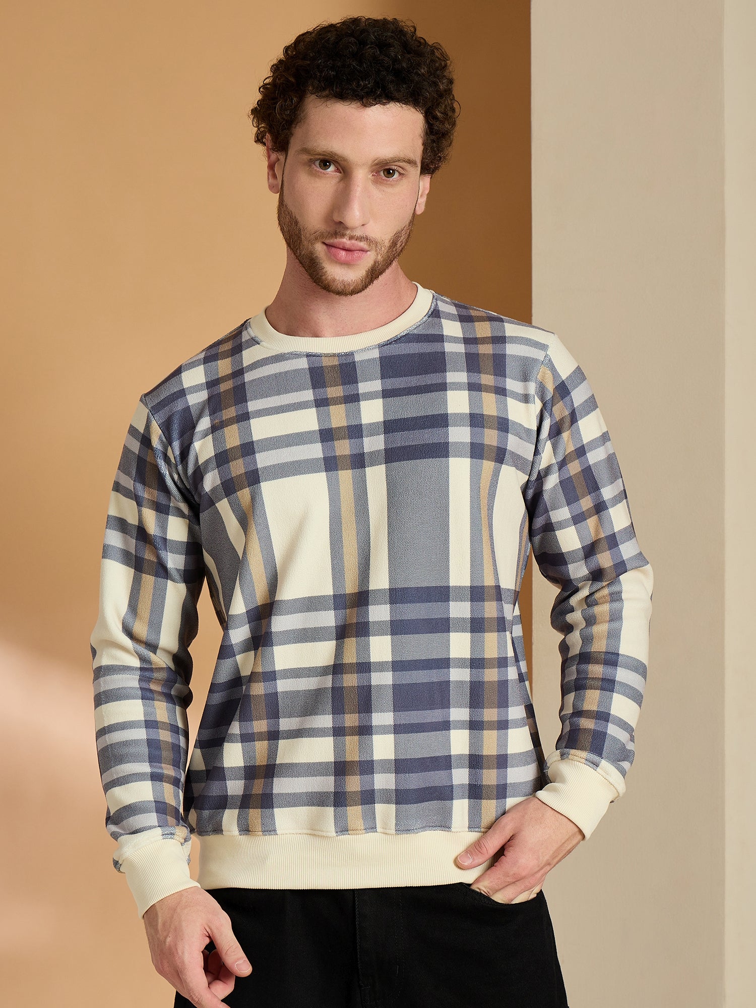 Elevate your casual wardrobe with this versatile blue checked round neck sweatshirt. Crafted for comfort and style, the classic checked pattern adds visual interest while the round neckline offers a timeless silhouette. Perfect for layering or wearing solo, this piece transitions seamlessly from weekend lounging to casual outings. The structured fit ensures a polished appearance, making it an essential addition to any modern wardrobe. Ideal for year-round wear.