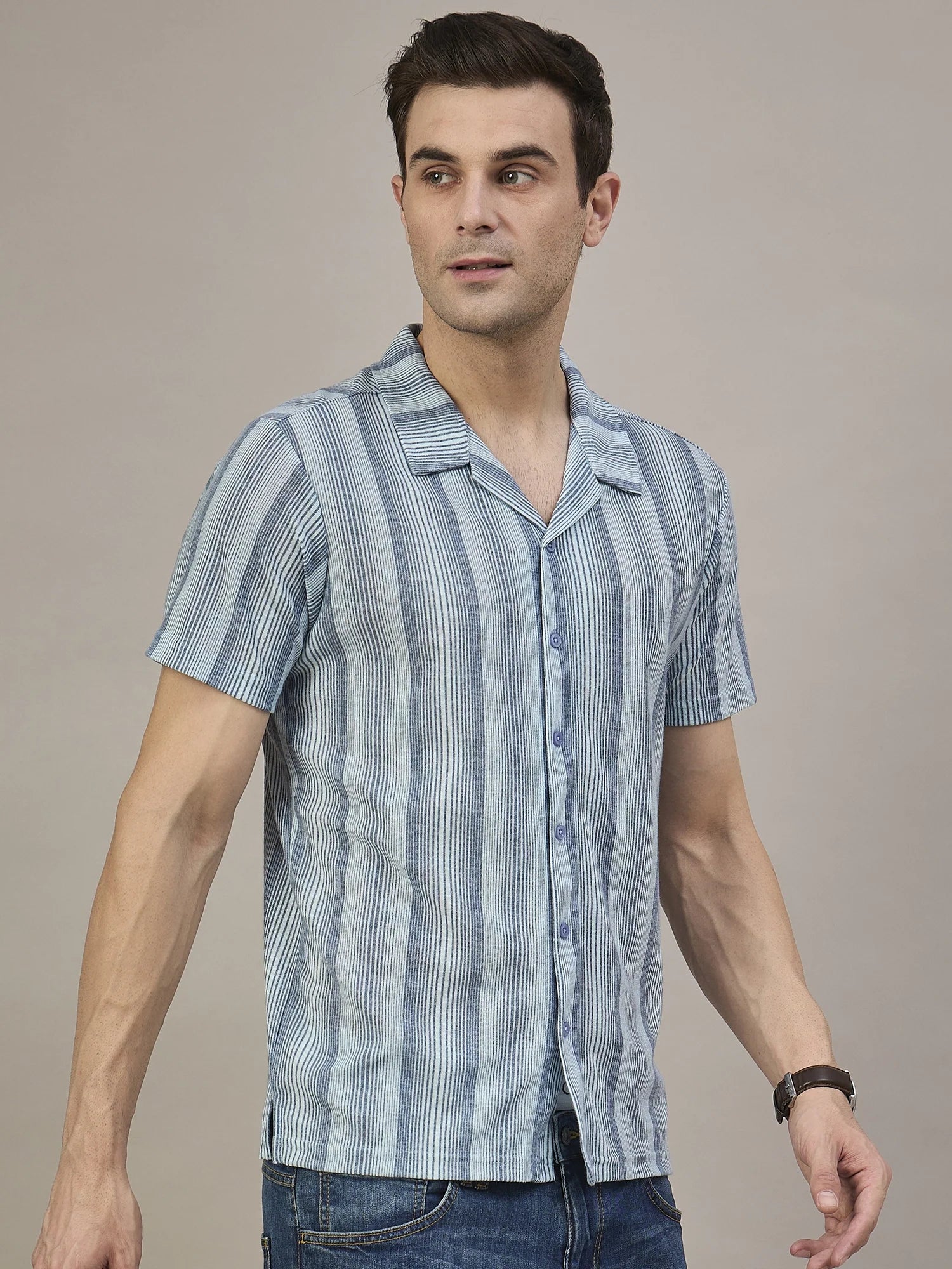 Men Striped Shirt Blue