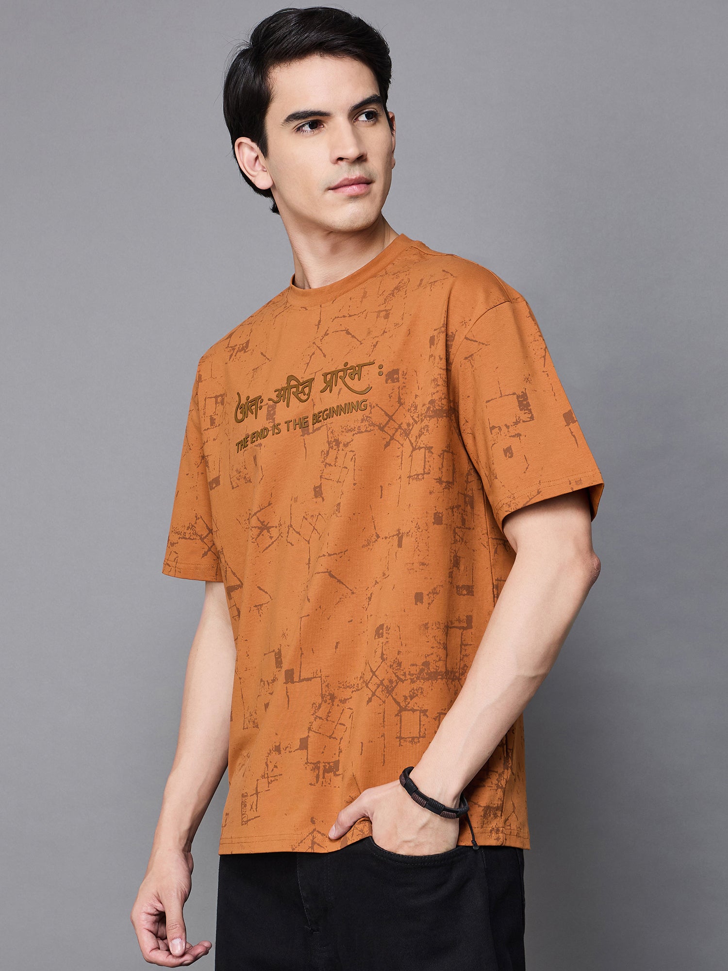 Men Summer orange Solid Round Neck Half Sleeve Hindi Wording Tshirt