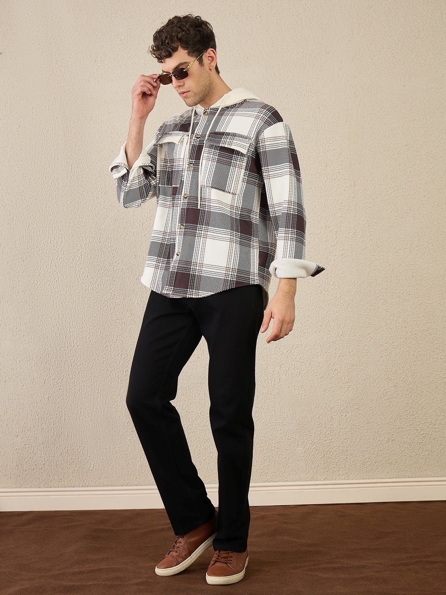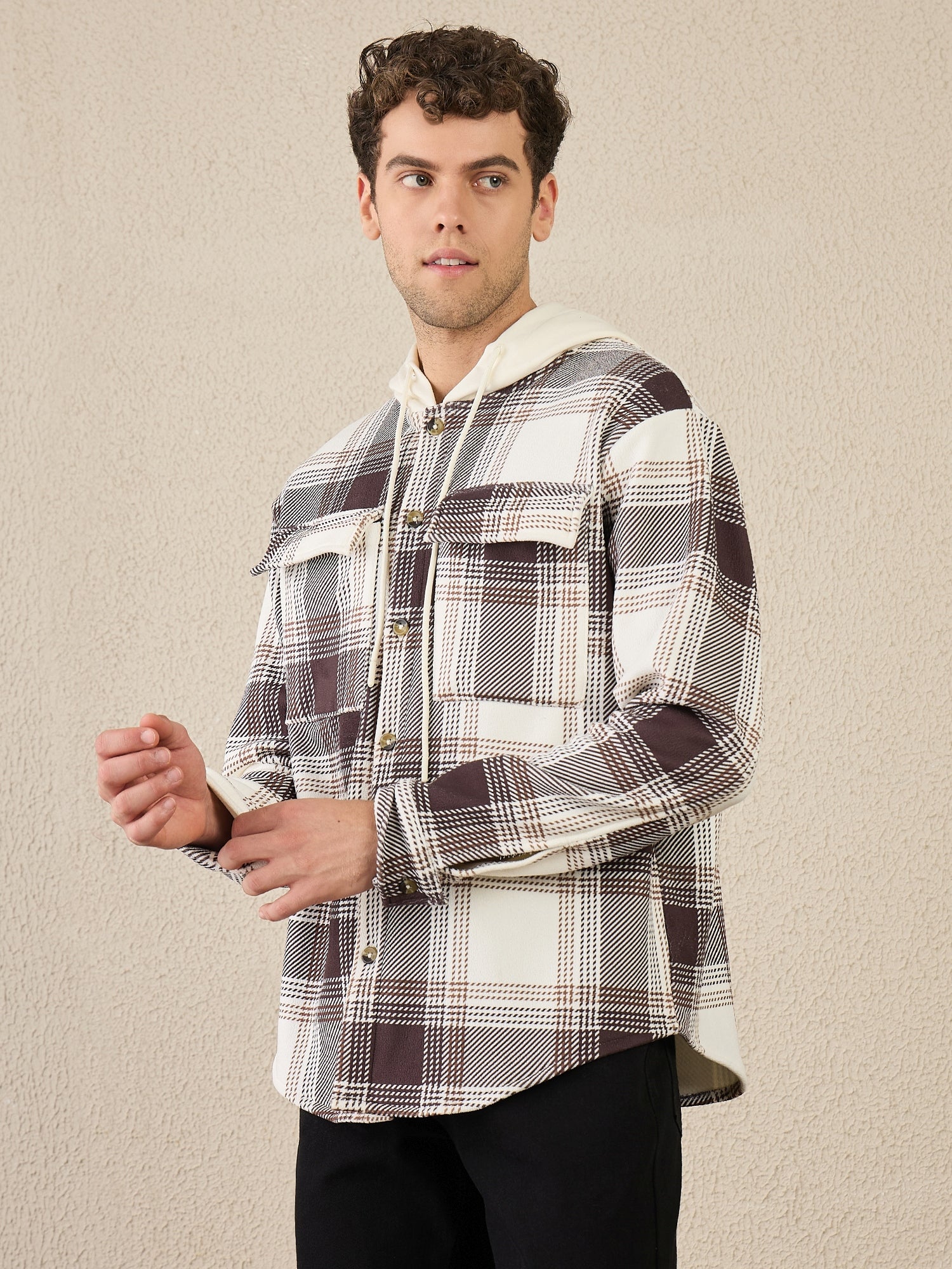 Dare to stand out in this audacious offwhite and brown checked buttoned hoodie. Bold geometric patterns clash with classic comfort, creating a statement piece that refuses to blend in. The structured button front adds an unexpected edge to traditional hoodie design, while the rich color blocking demands attention. Perfect for those who reject ordinary and embrace distinctive style. Layer it, own it, make it unmistakably yours.