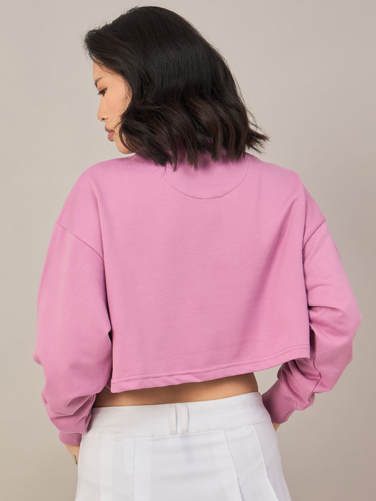 Elevate your casual wardrobe with this chic pink cropped sweatshirt designed for the modern woman. The solid hue offers versatile styling options, pairing effortlessly with high-waisted jeans, skirts, or joggers for an on-trend silhouette. Crafted for comfort, this piece delivers warmth without bulk, making it perfect for layering or wearing solo during mild weather. The cropped cut flatters various body types while keeping you fashion-forward. Whether you're heading to brunch, running errands, or relaxing at home, this essential sweatshirt combines style and comfort in one must-have piece.