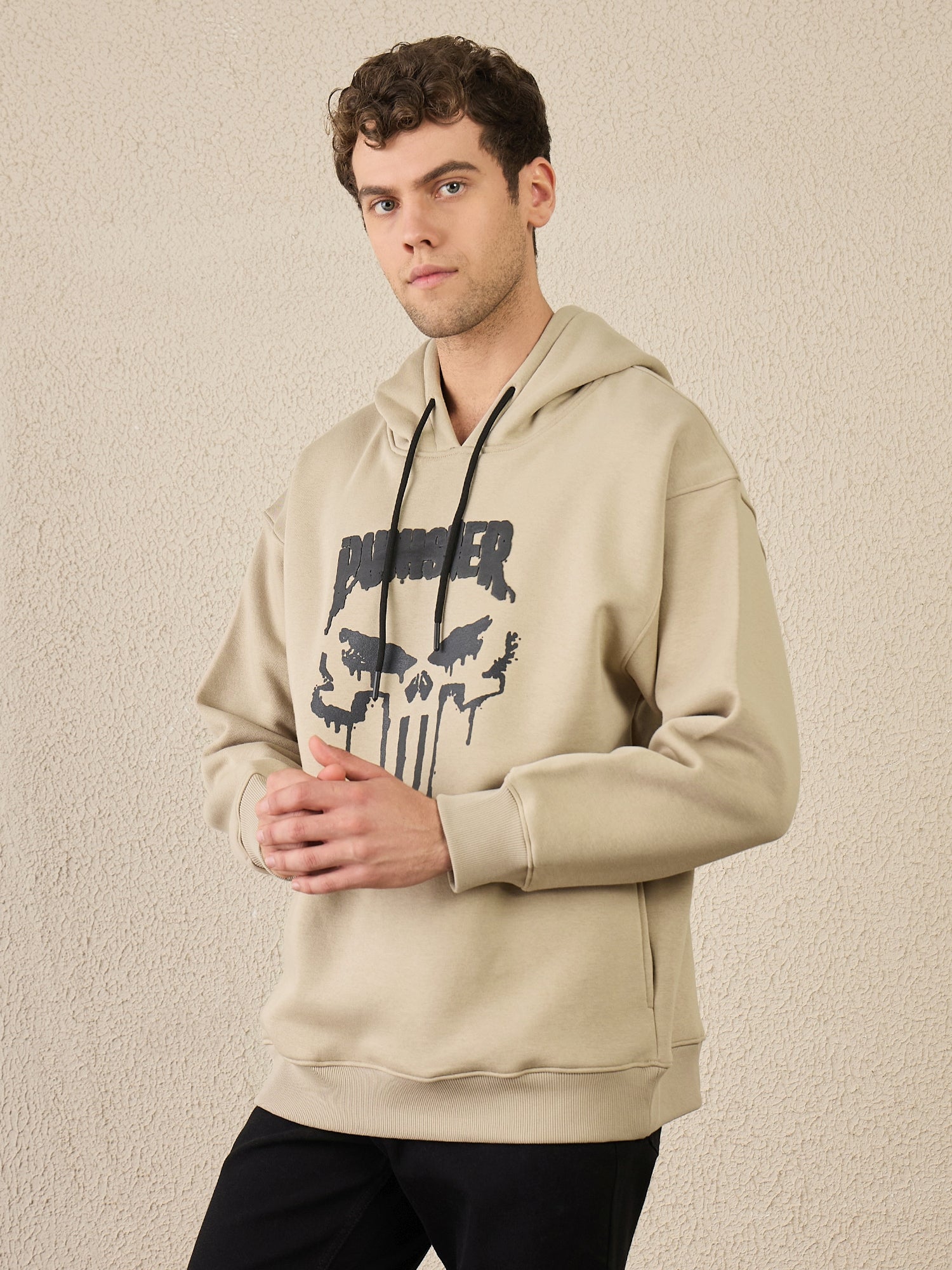 Reprise X Punisher Beige Oversize Printed Hoodie