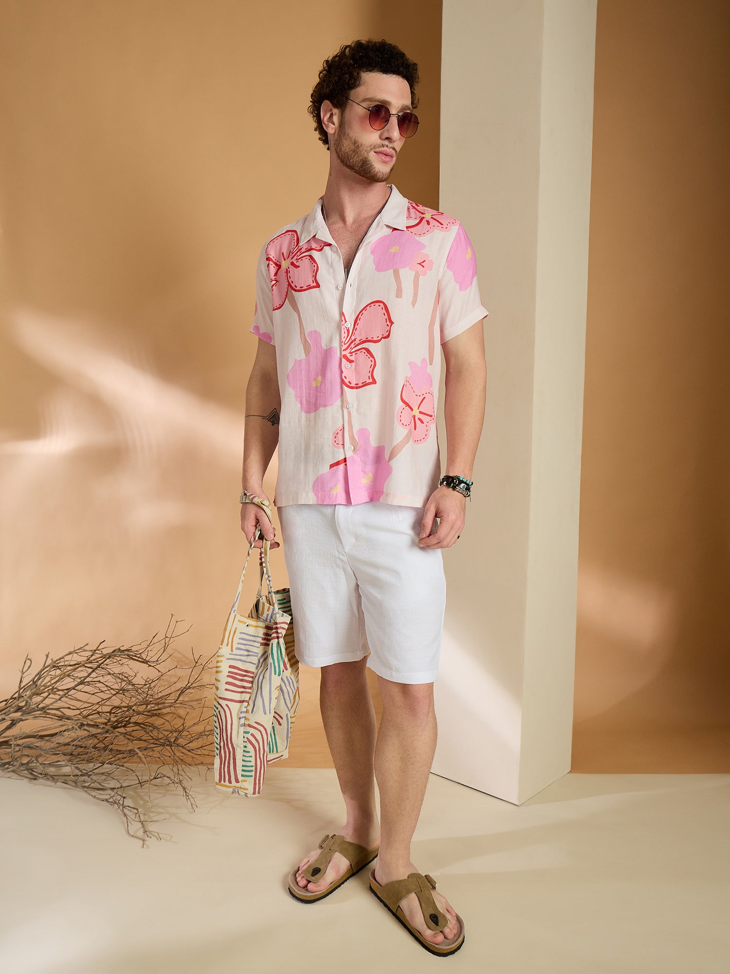 Cool and contemporary, this self design printed shirt offers a polished fit and lightweight feel. Ideal for summer brunches.