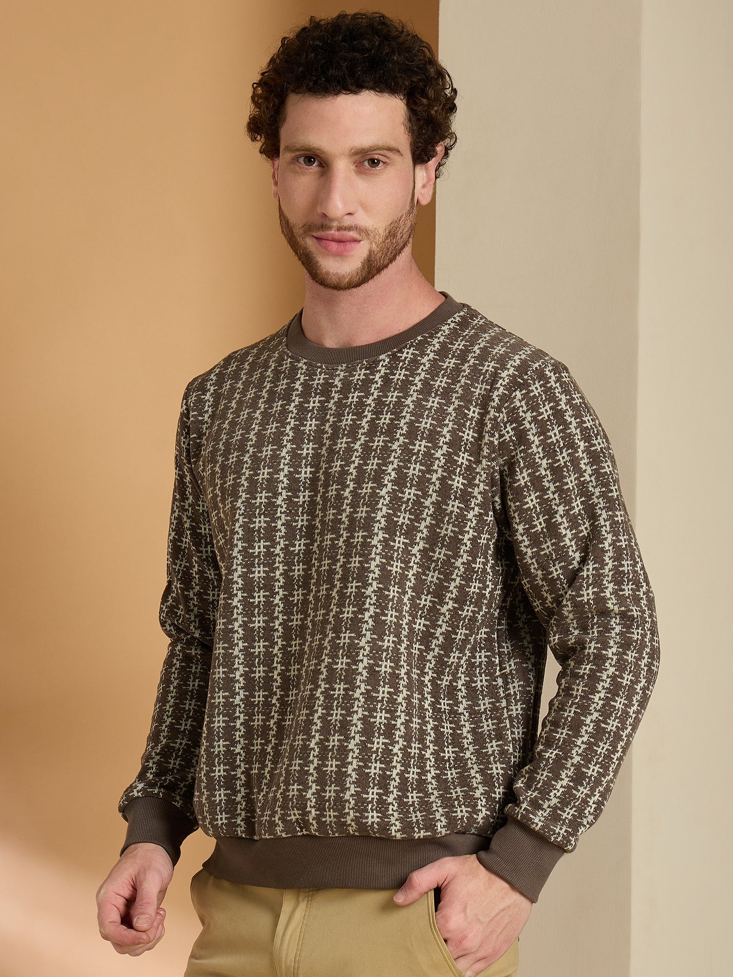 Textured Pullover Full Sleeves Round Neck Sweatshirt