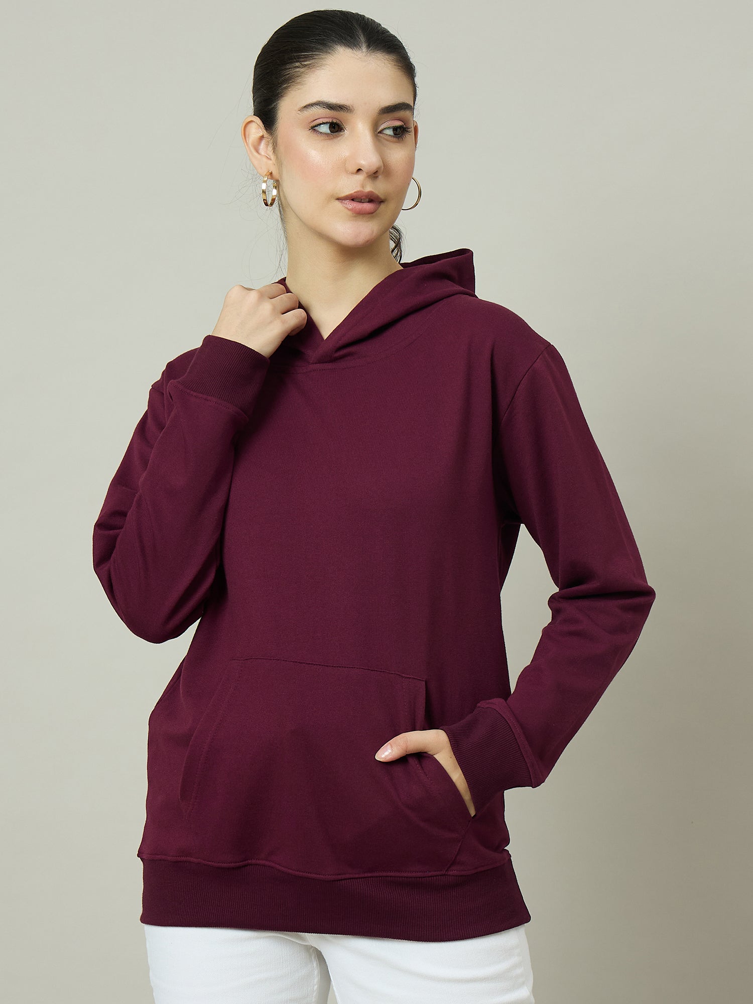 Elevate your casual wardrobe with this women’s maroon hoodie, featuring a rich, deep hue that exudes elegance. Made from premium fabric, it ensures warmth and comfort while maintaining a sleek, refined silhouette. Ideal for layering or standalone wear, this hoodie combines functional design with a sophisticated touch for effortless everyday style.